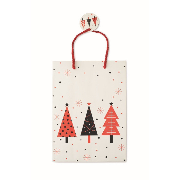 Saco de papel médio de Natal, com certificação FSC, um brinde publicitário para utilizar como parte da sua estratégia de marketing natalícia.