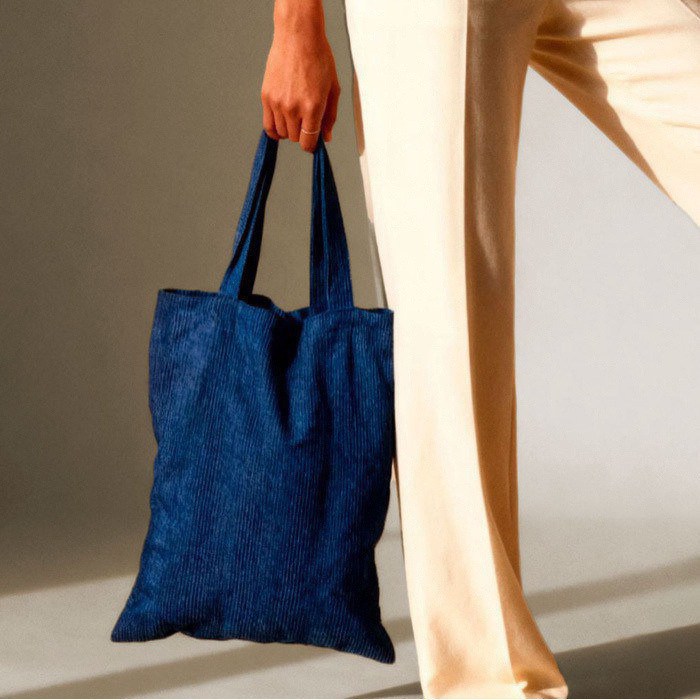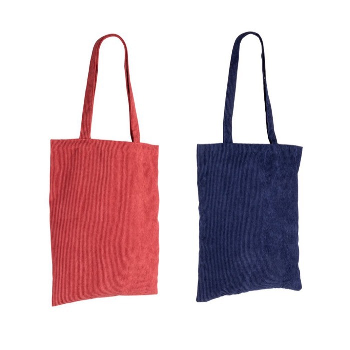 Saco com alças longas fabricado em veludo cotelê de poliéster.