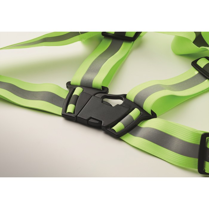 Cinto de corpo reflector ajustável de 360° de alta visibilidade com faixas prateadas.