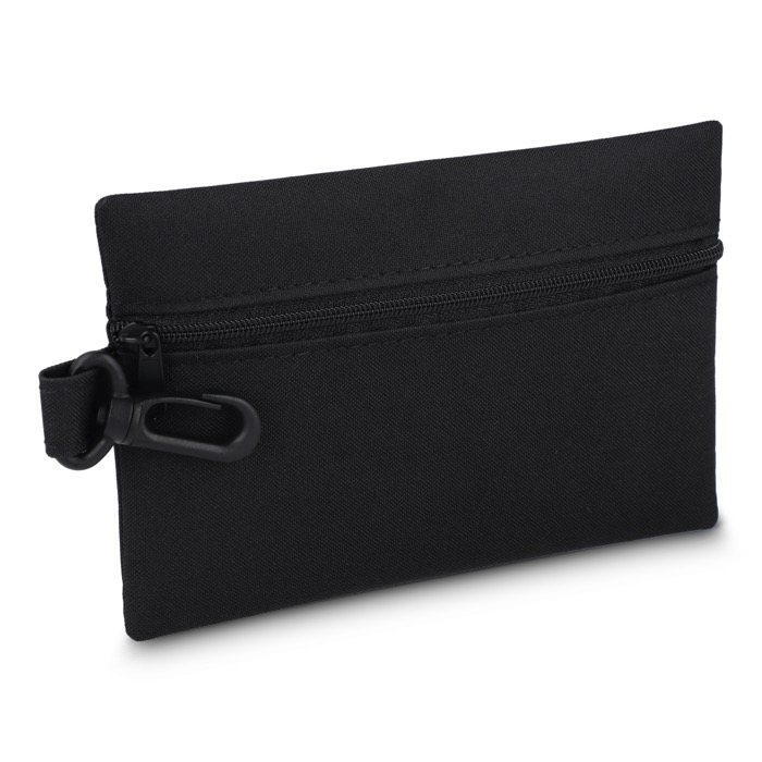 Kit de primeiros socorros em bolsa de poliéster 300D, concebido para levar o essencial de forma ordenada e acessível. Inclui mosquetão para o pendurar na mochila, cinto ou material de trabalho e cumpre normas europeias para fornecimento de cuidados básicos. Inclui pensos transparentes em dois tamanhos, pensos-rápidos, toalhitas de limpeza e compressas com álcool para tratar cortes e arranhões pequenos. Útil como brinde empresarial em eventos desportivos, viagens de empresa ou ações de prevenção em equipa.