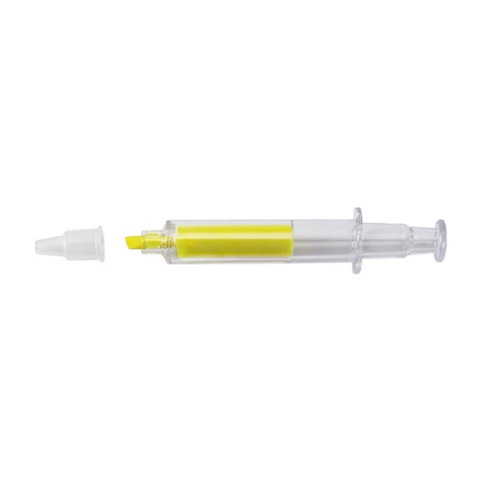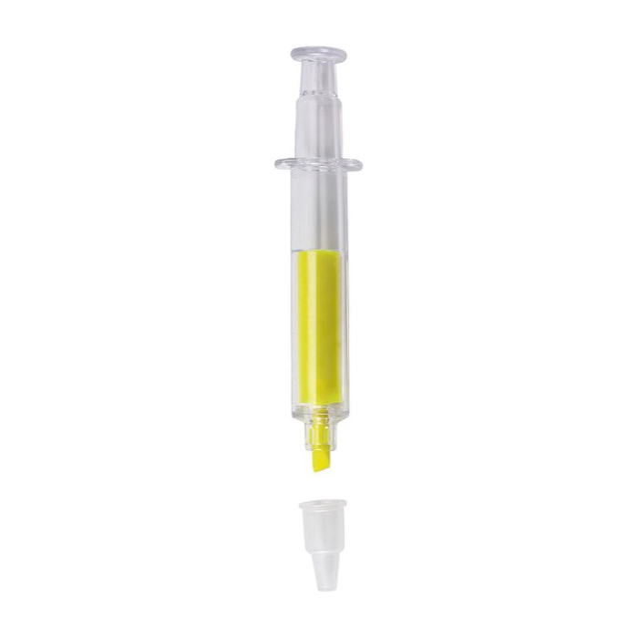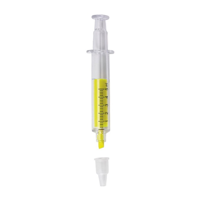 Marcador fluorescente original em forma de seringa, fabricado em ABS. Acrescenta um toque criativo às apresentações e destaca ideias com design único.