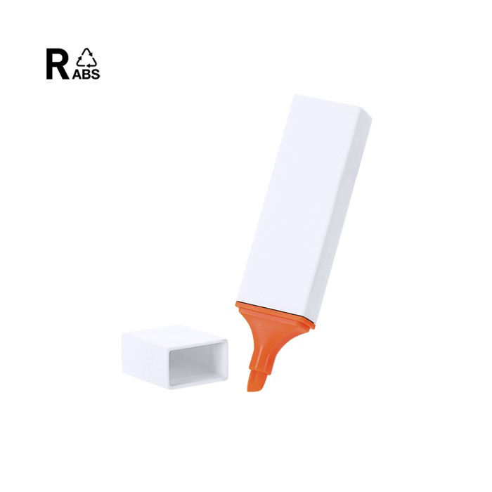 Marca-texto fluorescente de plástico reciclado com corpo de cor sólida e tampa a condizer. A tinta de várias cores permite-lhe sublinhar, realçar e organizar informação conforme as prioridades. Útil em reuniões, formações ou trabalho diário no escritório. O design compacto facilita o transporte em estojos, bolsos ou tabuleiros de secretária sem ocupar muito espaço. Inclui selo impresso rABS (plástico reciclado) no corpo para rápida identificação do material. Escolha prática para ações de papelaria corporativa ou eventos com logo.
