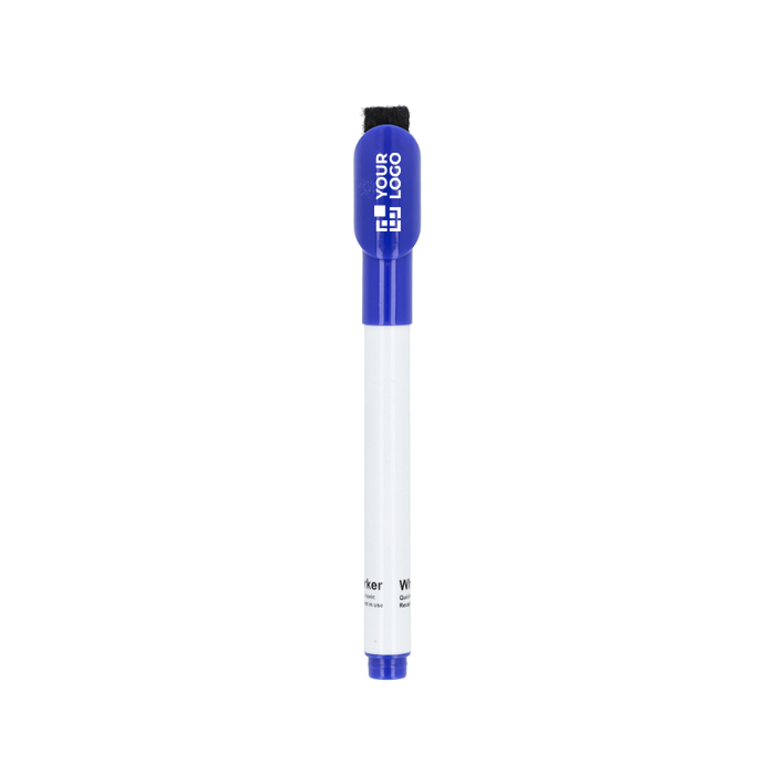 Marcador para quadro branco de tinta apagável a seco, desenhado para uso diário em salas de reuniões, aulas e locais de trabalho. Inclui íman para o fixar a superfícies metálicas e apagador para corrigir notas no momento sem precisar de ir buscar acessórios. Disponível em várias cores de escrita para organizar tarefas, realçar dados ou diferenciar equipas. Opção prática para ações de comunicação interna, formações e eventos corporativos com mensagem variável.